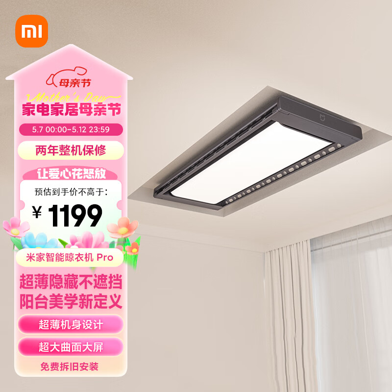 米家智能晾衣机Pro 电动晾衣架 超薄机身嵌入隐藏 无线遥控升降 小米价格:1199.00元!