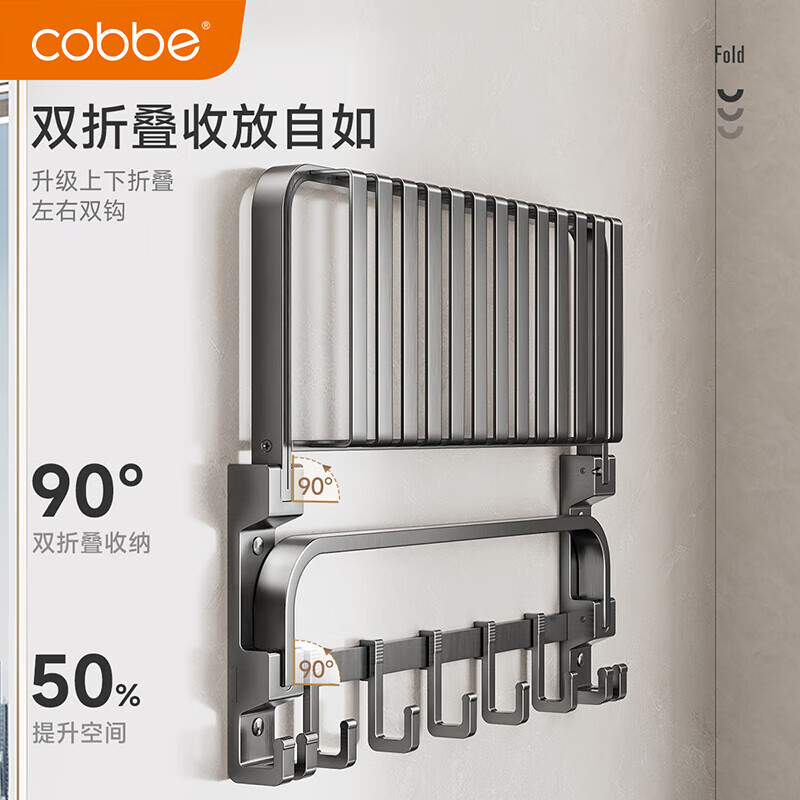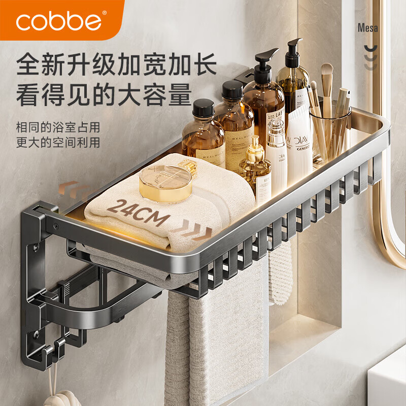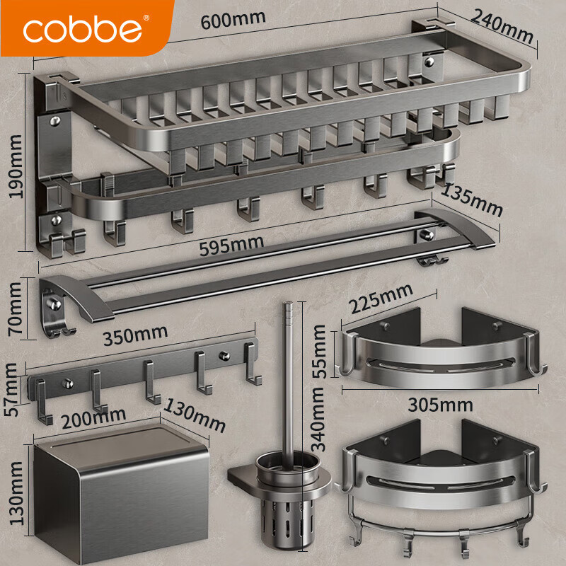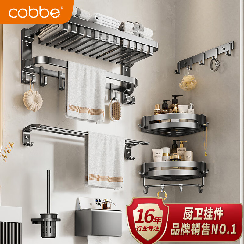 卡贝(cobbe)枪灰太空铝毛巾架浴室壁挂式免打孔卫生间置物架厕所洗手间浴巾架价格:418.00元!