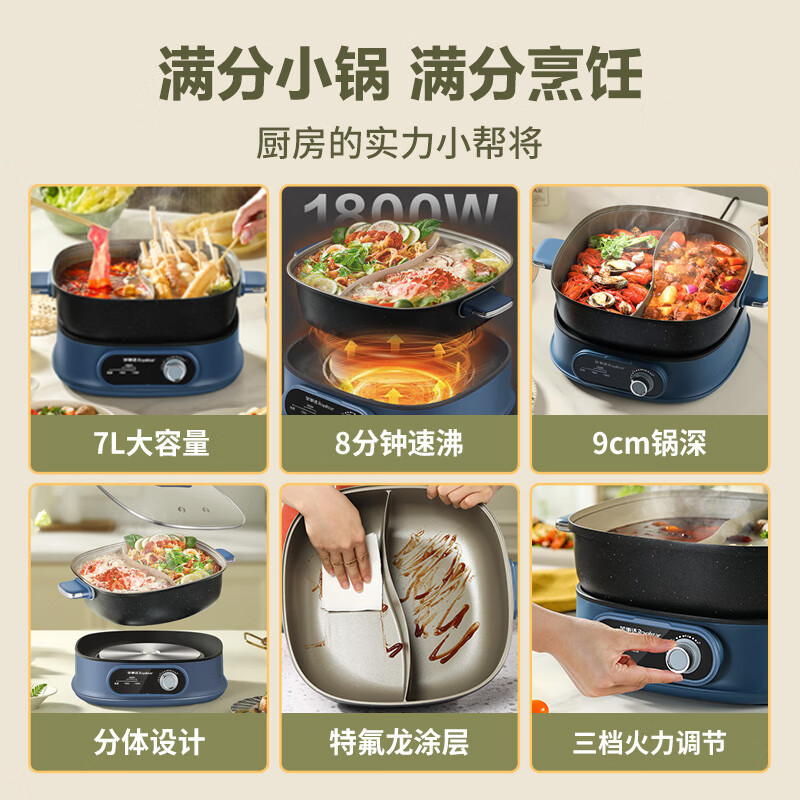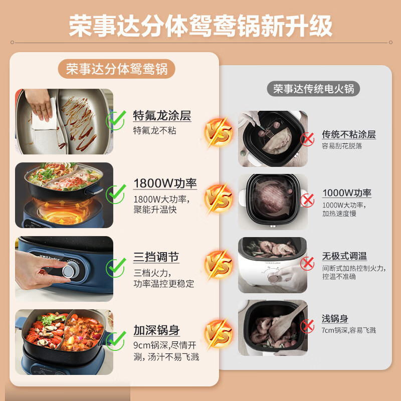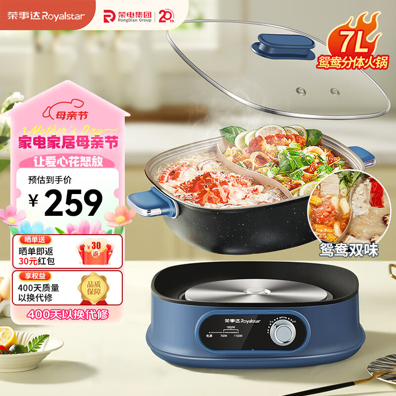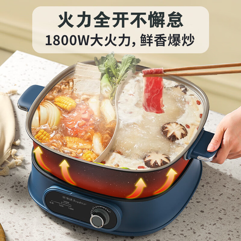 荣事达(Royalstar)鸳鸯锅7L大容量电火锅火锅专用锅速沸多用途锅电煮锅多功能锅分体家用电热锅火锅锅 RHG-60XH2价格:259.00元!
