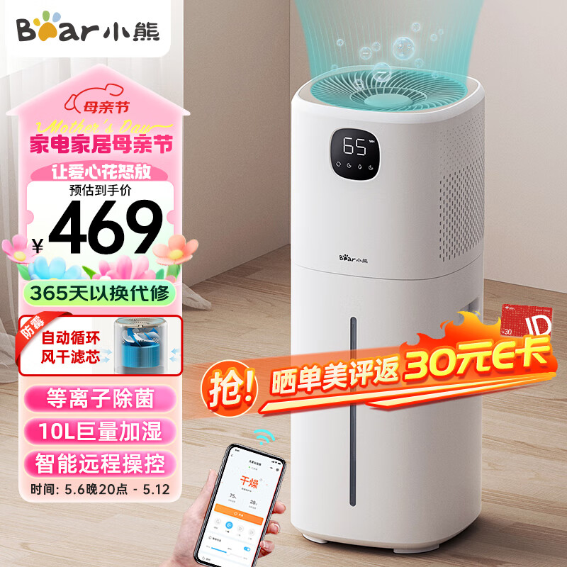 小熊(Bear)无雾加湿器 卧室轻音婴儿用办公室大容量 家用低噪智能恒湿母婴落地空气加湿JSQ-FA0B1升级款价格:719.00元!