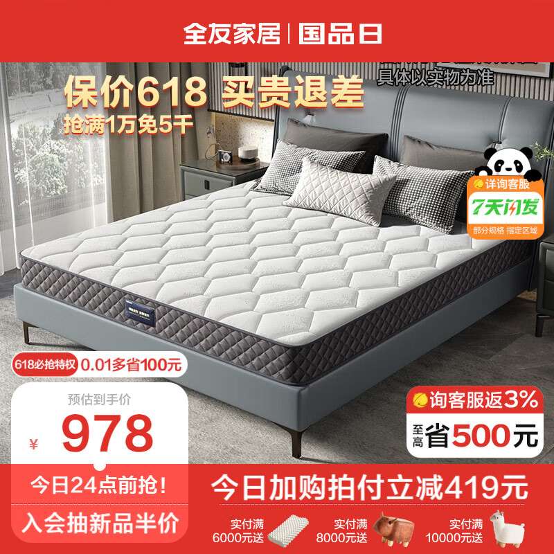 全友家居 床垫乳胶床垫软硬适中独立袋装弹簧床垫105171I价格:1397.14元!