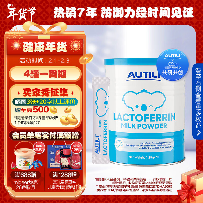 澳特力【崔玉涛团队亲研】乳铁蛋白 调制乳粉儿童 高含量免疫球蛋白 蛋白粉 适用宝宝成人孕婴童 澳洲进口75g价格:514.00元!