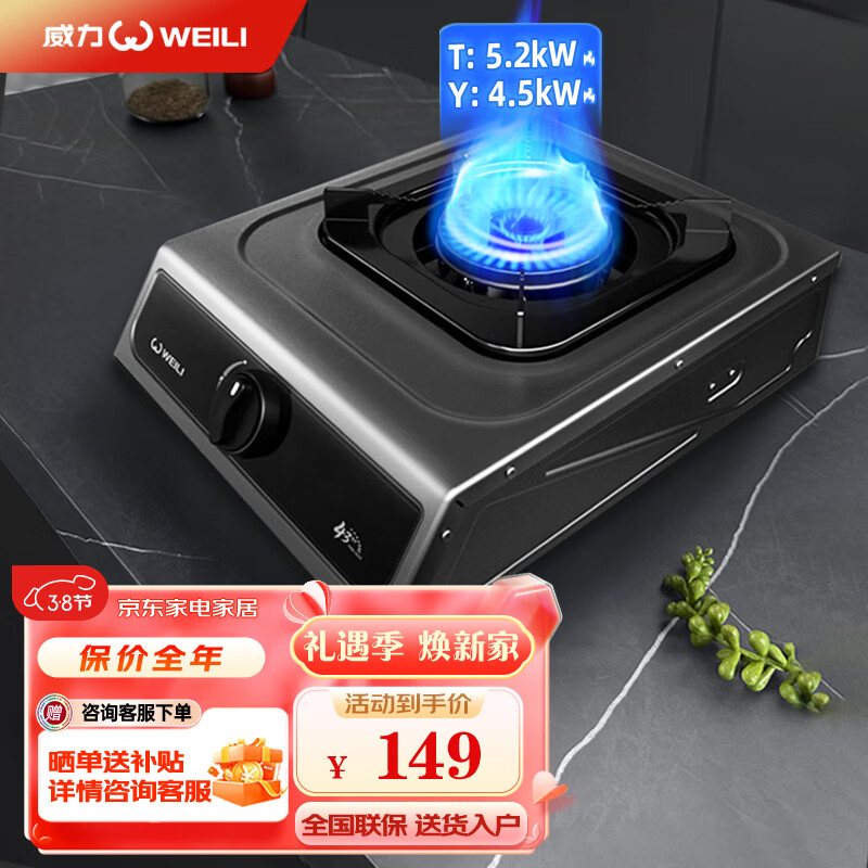 威力(WEILI)燃气灶台式4.5kw猛火灶不沾油涂层炉具出租屋煤气灶单灶家用厨房单眼灶具WLD1S(液化气)价格:148.66元!