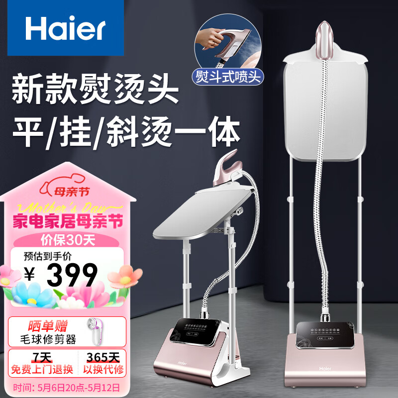 海尔(Haier)蒸汽挂烫机家用双杆带板手持立式大功率熨烫机电熨斗HY-GSS2408G价格:399.00元!