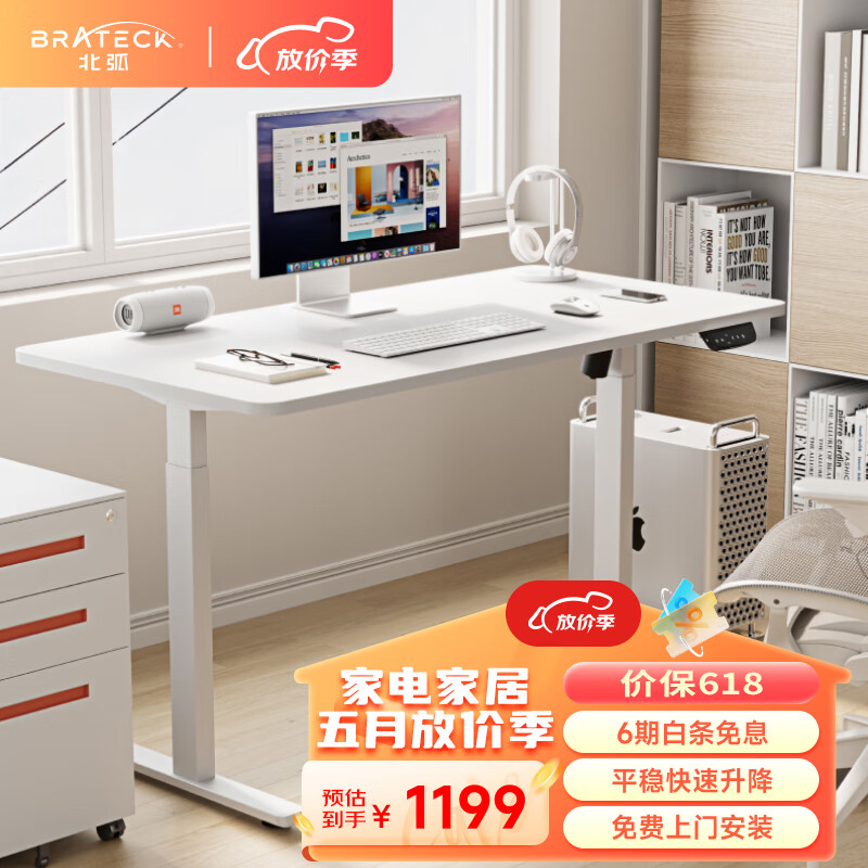 Brateck电动升降电脑桌 北弧站立办公升降书桌 工作升降台 K2白1.5米价格:1359.00元!