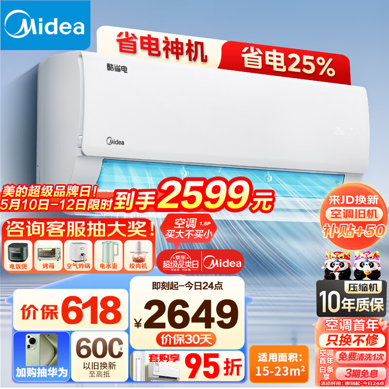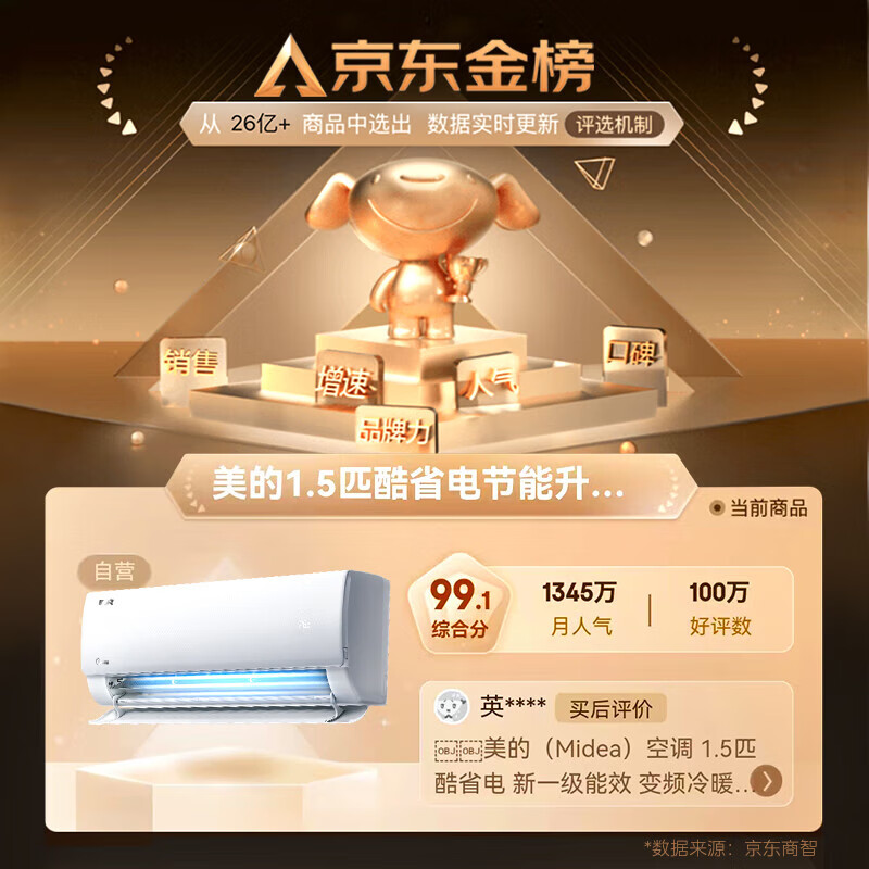 美的(Midea)空调 1.5匹 酷省电 新一级能效 变频冷暖 自清洁 壁挂式空调挂机 智能家电 KFR-35GW/N8KS1-1价格:2599.00元!