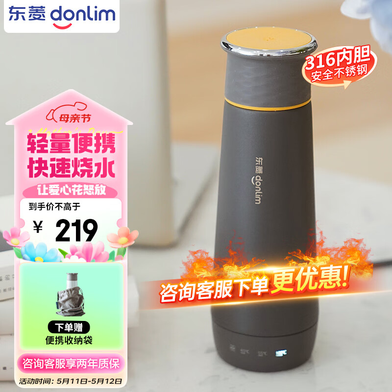 东菱(Donlim)电水壶 便携式烧水壶 电热水杯家用 旅行烧水杯 小型冲奶防烫办公室养生保温杯 DL-B1钛金灰价格:219.00元!