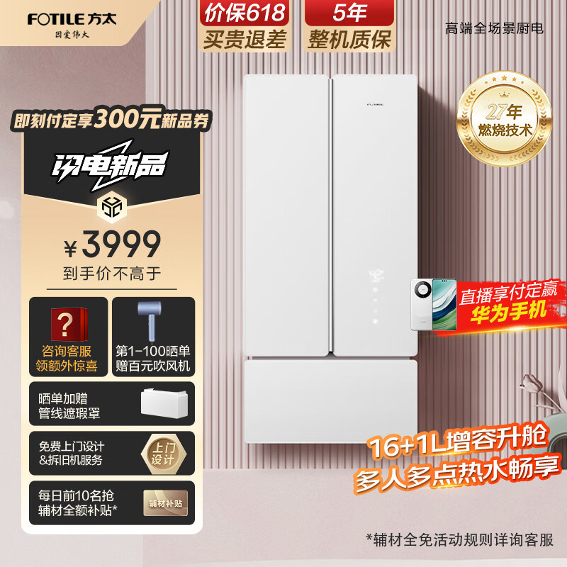 方太(FOTILE)16+1升燃气热水器天然气蝶翼系列 家用即热式水伺服变频静音沐浴洗 晶缎玻璃管线遮瑕MS16T1-FR价格:4299.00元!