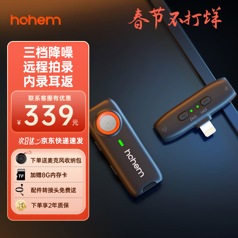 浩瀚(hohem) Mic-01无线领夹麦克风直播收音麦话筒讲解器手机设备主播短视频单反相机录音苹果黑色一拖一价格:339.00元!