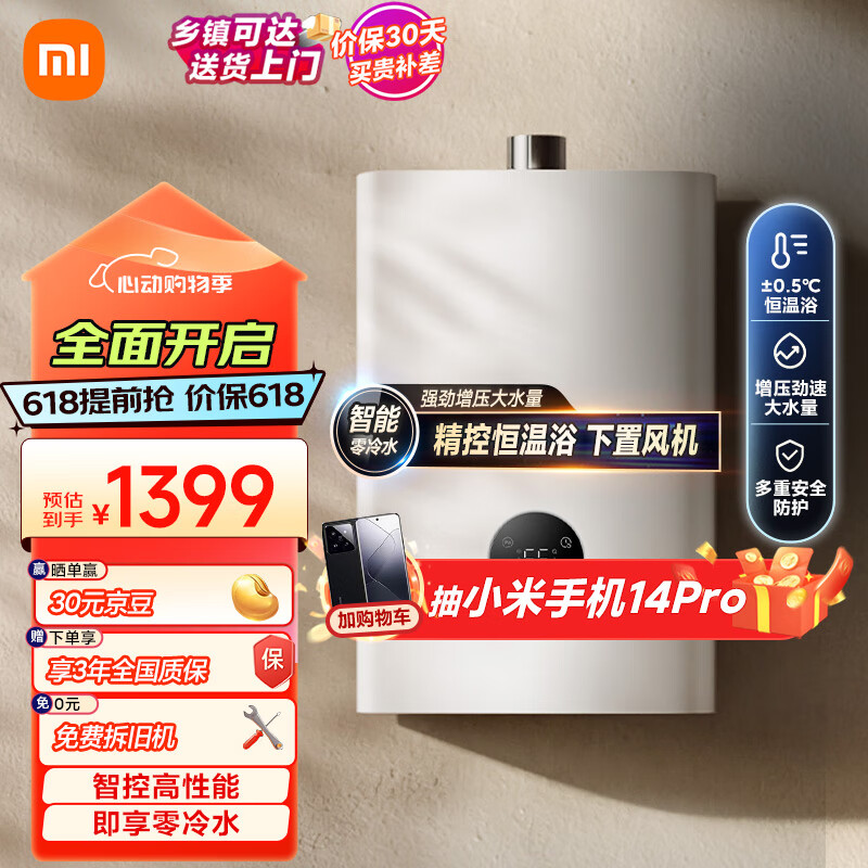 米家小米16升燃气热水器天然气水气双调智能恒温护肤零冷水 ECO节能净滤除菌护肤洗智慧节能JSQ30-MJ03价格:1399.00元!