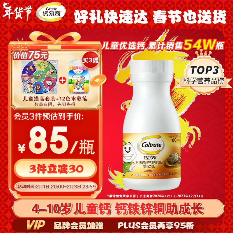钙尔奇 钙片儿童 小添佳咀嚼片 儿童钙片维生素D3宝宝钙铁锌铜咀嚼片4-10岁 80片价格:105.00元!