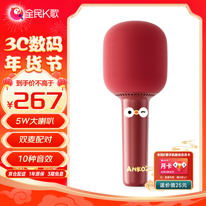 K歌麦克风 家庭ktv变声器儿童唱歌卡拉OK电视抖音直播降噪无线蓝牙k歌宝手持话筒音响红色价格:267.00元!