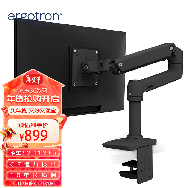 爱格升(Ergotron)LX显示器支架臂单臂显示屏支架桌面升降屏幕支架34英寸显示器增高架45-241-224哑光黑价格:1057.00元!