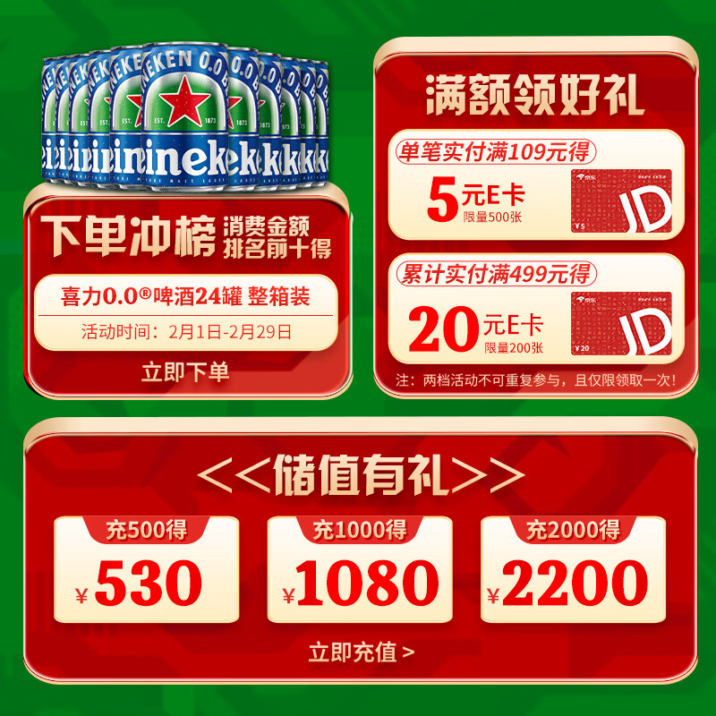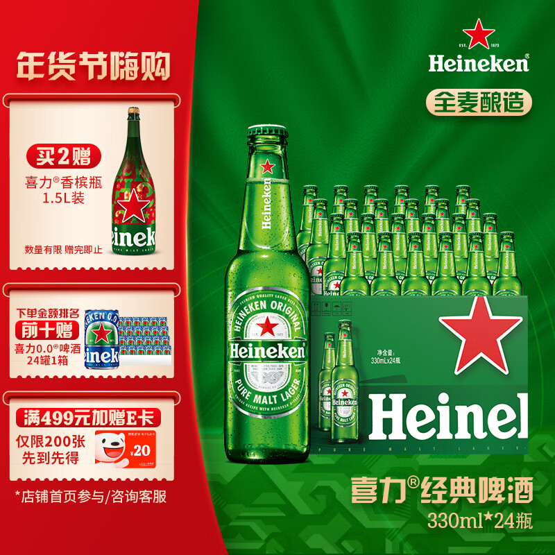 喜力经典330ml*24瓶整箱装 喜力啤酒Heineken价格:198.00元!