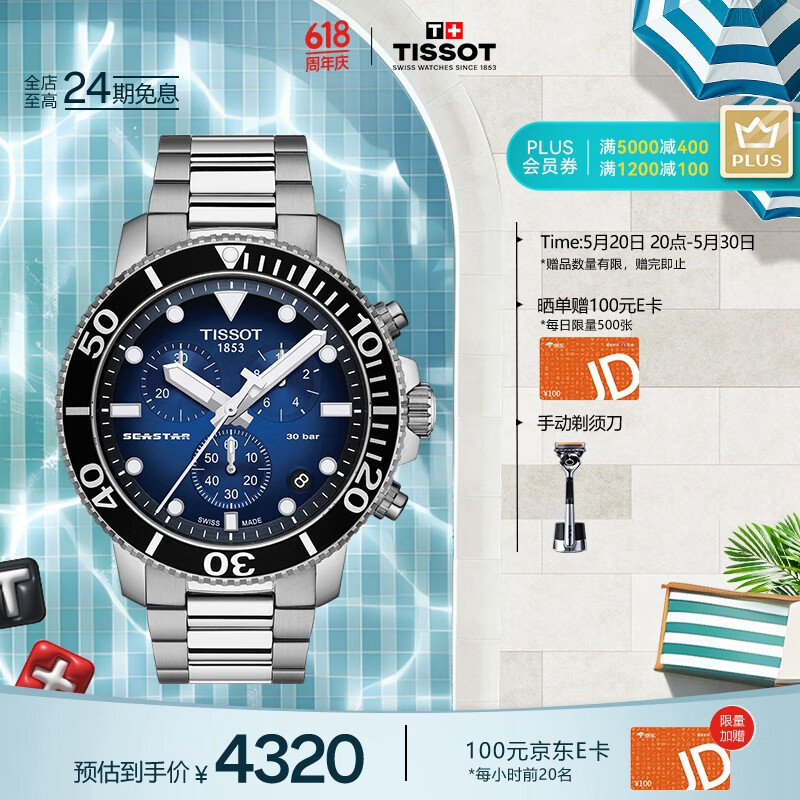 天梭(TISSOT)瑞士手表 海星系列钢带石英男表 520送男友T120.417.11.041.01价格:4800.00元!