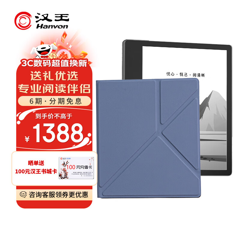 汉王(Hanvon) Clear 7英寸电子书阅读器 墨水屏电纸书 看书学习便携阅读办公本冰山灰支架保护套.套装价格:1388.00元!