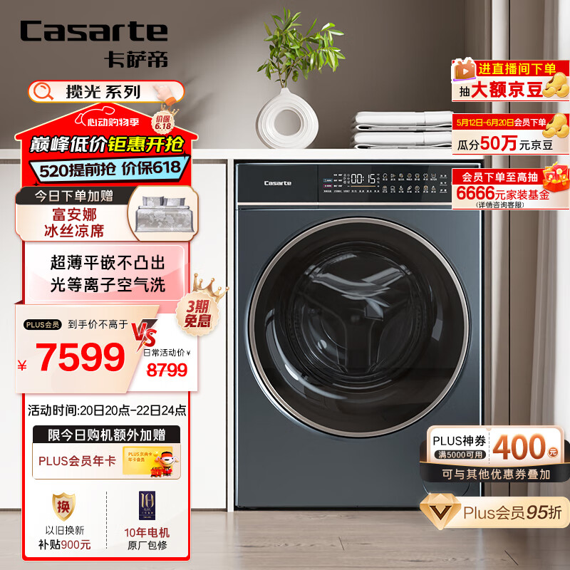 卡萨帝(Casarte)揽光LD5 滚筒洗衣机全自动家用 10公斤洗烘一体机 直驱变频 超薄大筒径平嵌 光等离子 HD10LD5ELU1价格:8299.00元!