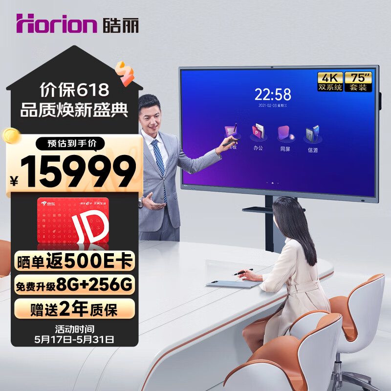 皓丽智能视频会议平板一体机75英寸触控触摸会议电视Windows11/8+256智慧触屏商用会议室大屏套装价格:19149.00元!
