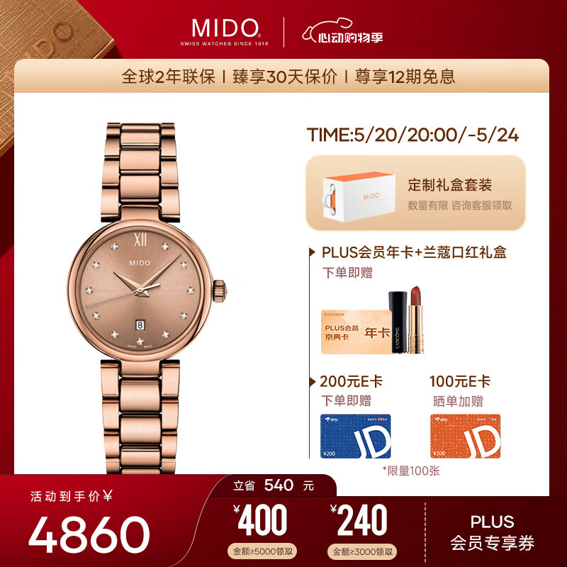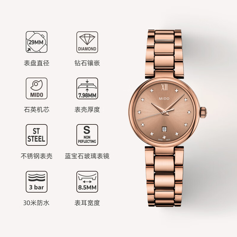 美度(MIDO)瑞士手表 贝伦赛丽 多娜真钻 时尚优雅 女士石英钢带腕表 送母亲价格:4860.00元!