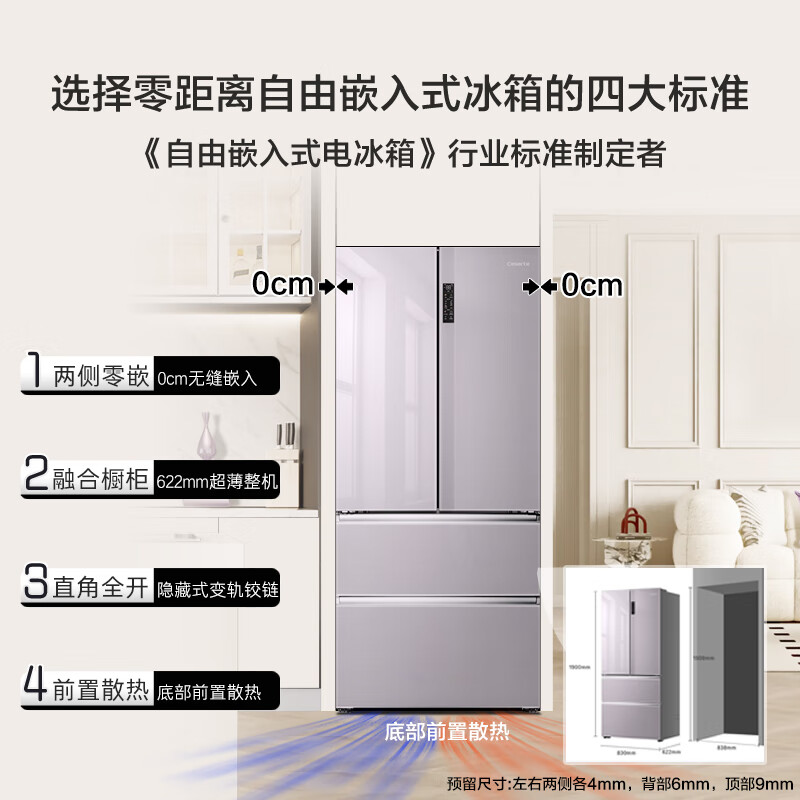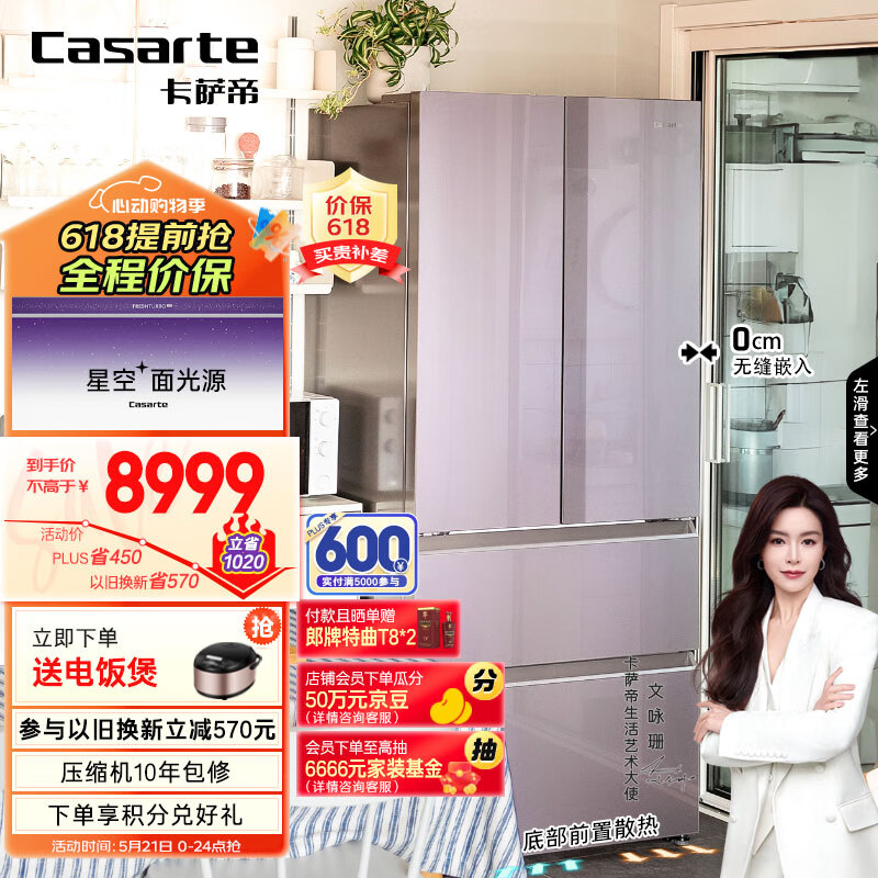 卡萨帝(Casarte)揽光星空502升超薄零嵌四开门家用大容量550姐妹款法式嵌入式无霜变频冰箱BCD-502WGCFDM4V3U1价格:9899.00元!