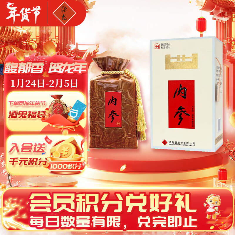 酒鬼 内参 馥郁香型高度白酒 54度 500ml 单瓶装 年货送礼价格:1499.00元!