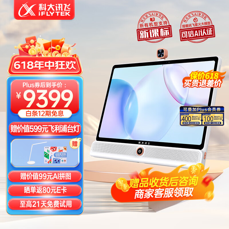科大讯飞AI学习机LUMIE10 Pro (8+512GB) 星火大模型 幼小初高全龄段 大屏护眼 学生平板 英语学习 17英寸价格:9799.00元!