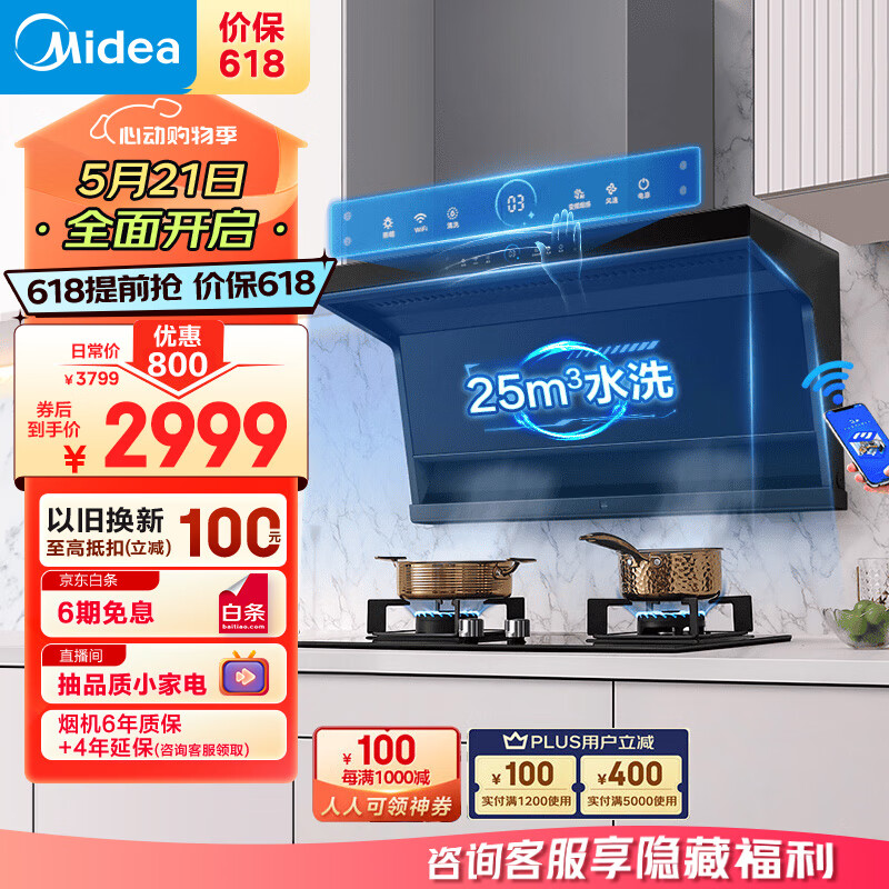 美的(Midea)抽油烟机 燃气灶具 家用顶侧双吸大吸力 高压水洗 变频排烟机 新静吸烟灶套装DC7+Q330天然气价格:3299.00元!