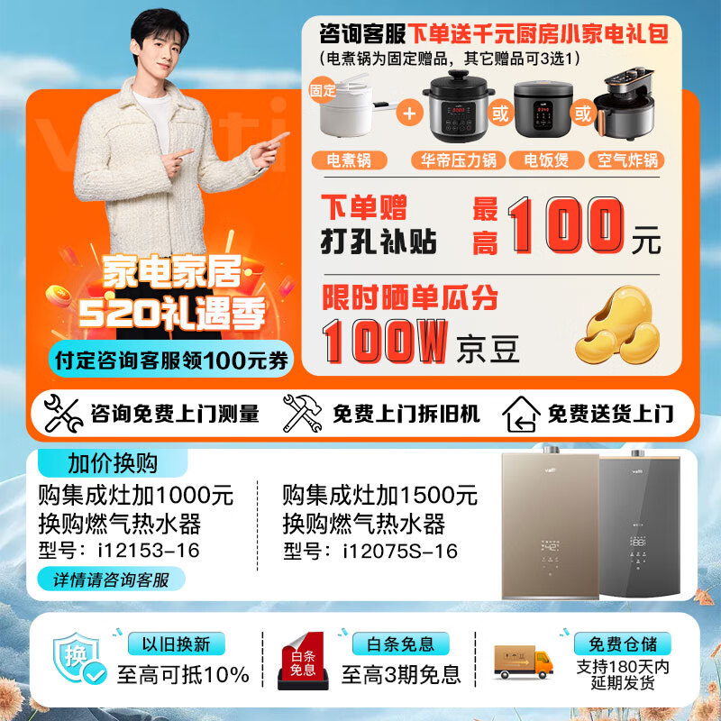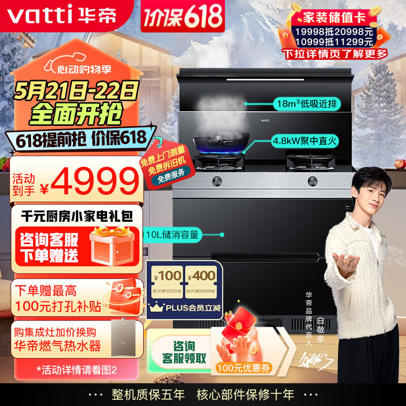 华帝集成灶一体式 集成灶消毒柜 家用烘干柜 灶具定时 超大置物台 抽烟机燃气灶套装 i3023G液化气价格:5499.00元!