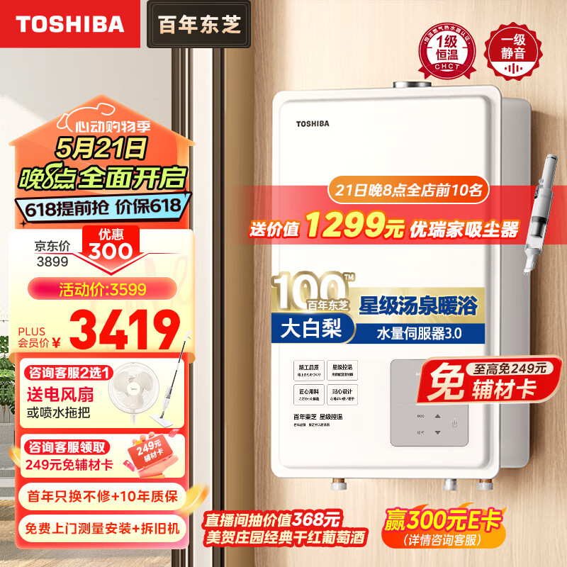 东芝(TOSHIBA)16升燃气热水器 天然气水伺服 3D恒温 进口CPU 下置变频风机 一级静音 大白梨TL10价格:3899.00元!