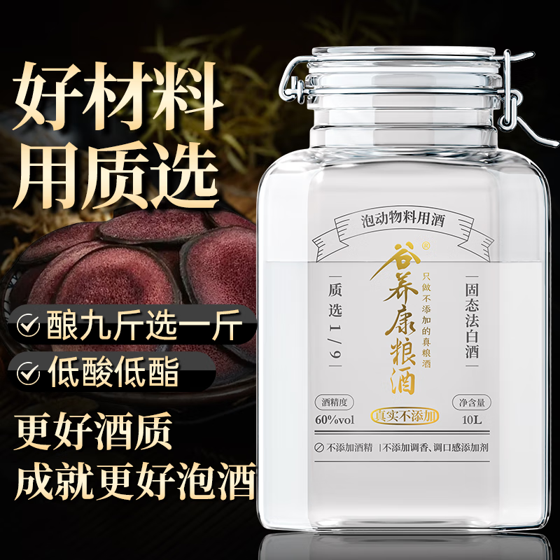 谷养康粮食酒 泡酒用酒大瓶清香高粱酒白酒泡果酒泡动植物料用酒真粮酒 60度 10L 1瓶 适合动物类【质选】价格:4158.00元!