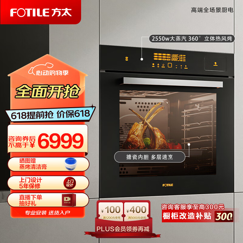 方太(FOTILE)蒸烤箱一体机嵌入式 76L*大容量 搪瓷内胆 蒸烤炖炸一体机 wifi智联 智能菜谱 ZK72-ES20.i价格:7699.00元!