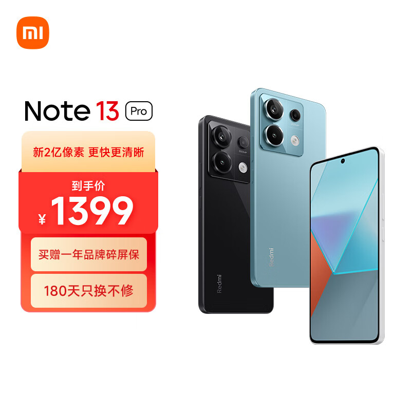 小米Redmi Note13Pro 新2亿像素 第二代1.5K高光屏 8GB+128GB 时光蓝 SU7 5G手机价格:1399.00元!