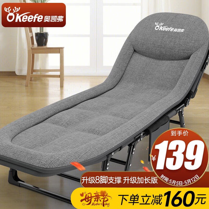 奥凯弗OKeefe折叠床躺椅午休床多功能单人行军床办公室午睡床陪护床灰色价格:299.00元!