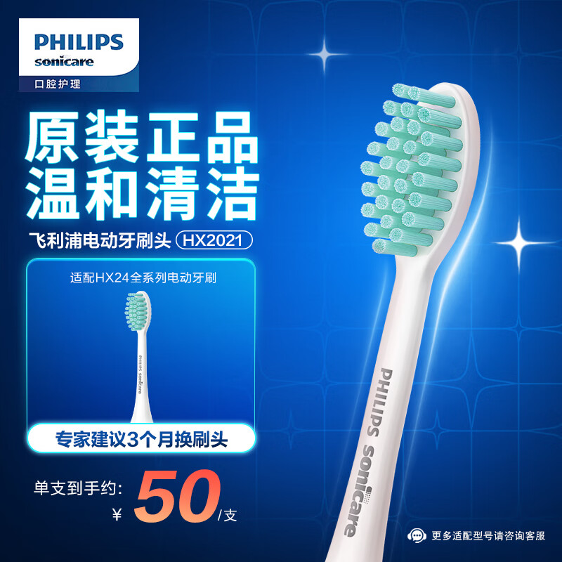 飞利浦电动牙刷头 3D软毛呵护牙龈 1支装 HX2021/02 适用于 HX24全系列电动牙刷价格:55.00元!