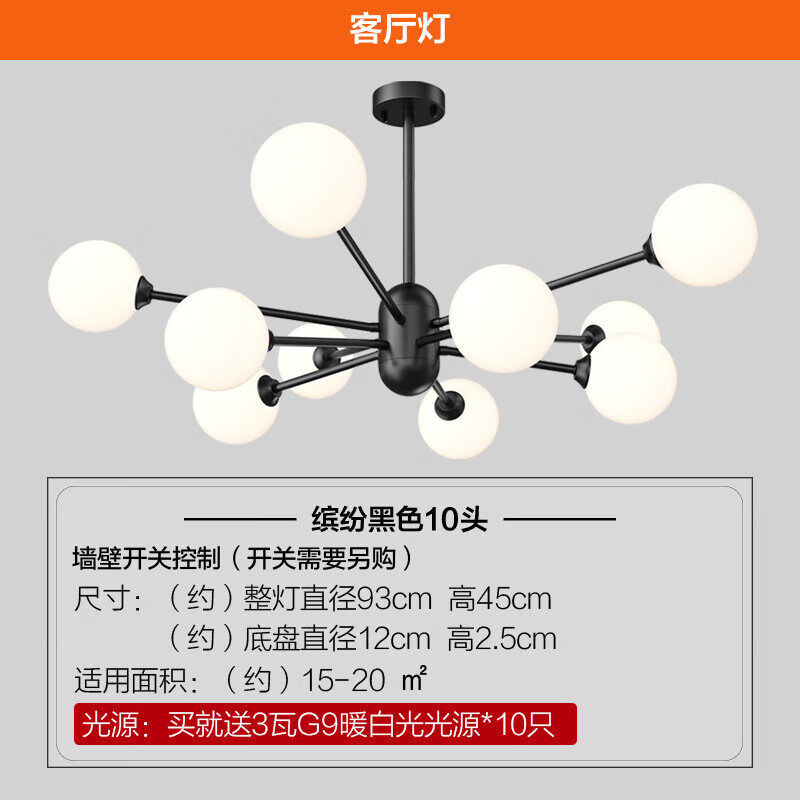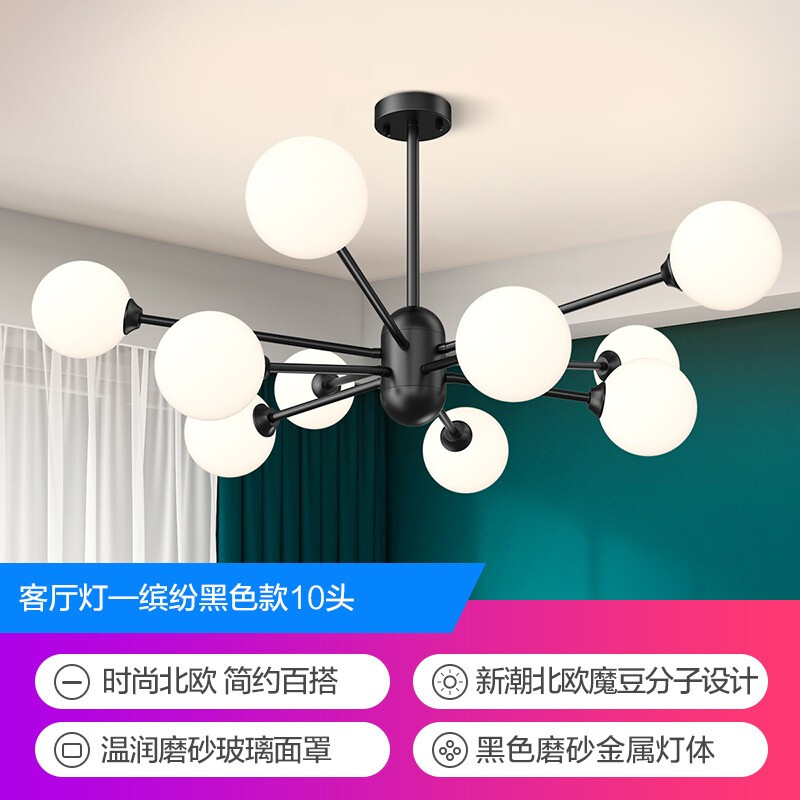 欧普(OPPLE)吊灯魔豆分子灯卧室灯具灯饰创意轻奢吊灯 缤纷-黑色-10头价格:714.40元!