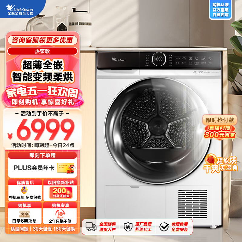 小天鹅(LittleSwan)10kg 热泵烘干机 干衣机家用 白色 超薄 除螨除菌除潮 多层线屑过滤 TH100VCH807W价格:6999.00元!