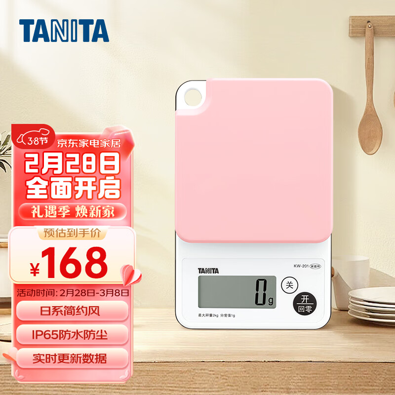 百利达(TANITA) KW-201家用厨房秤 日本品牌电子秤克称 粉色价格:199.00元!
