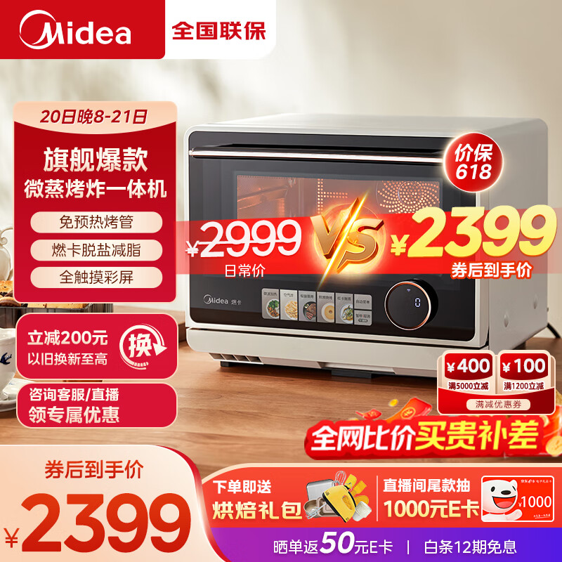 美的(Midea)寻味Pro系列 微蒸烤炸台式一体机 家用变频微波炉 空气炸蒸烤箱电烤箱 304不锈钢内胆 杏色(G21)价格:2599.00元!