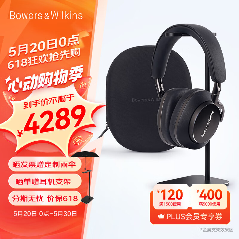宝华韦健(B&W) Px8 无线hifi头戴式蓝牙耳机 智能主动降噪Bowers&Wilkins高保真运动音乐耳麦长续航 曜石黑价格:4289.00元!