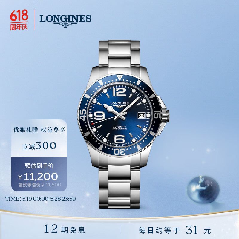 浪琴(LONGINES)瑞士手表 康卡斯潜水系列 机械钢带男表 520情人节礼物 L37414966价格:11200.00元!