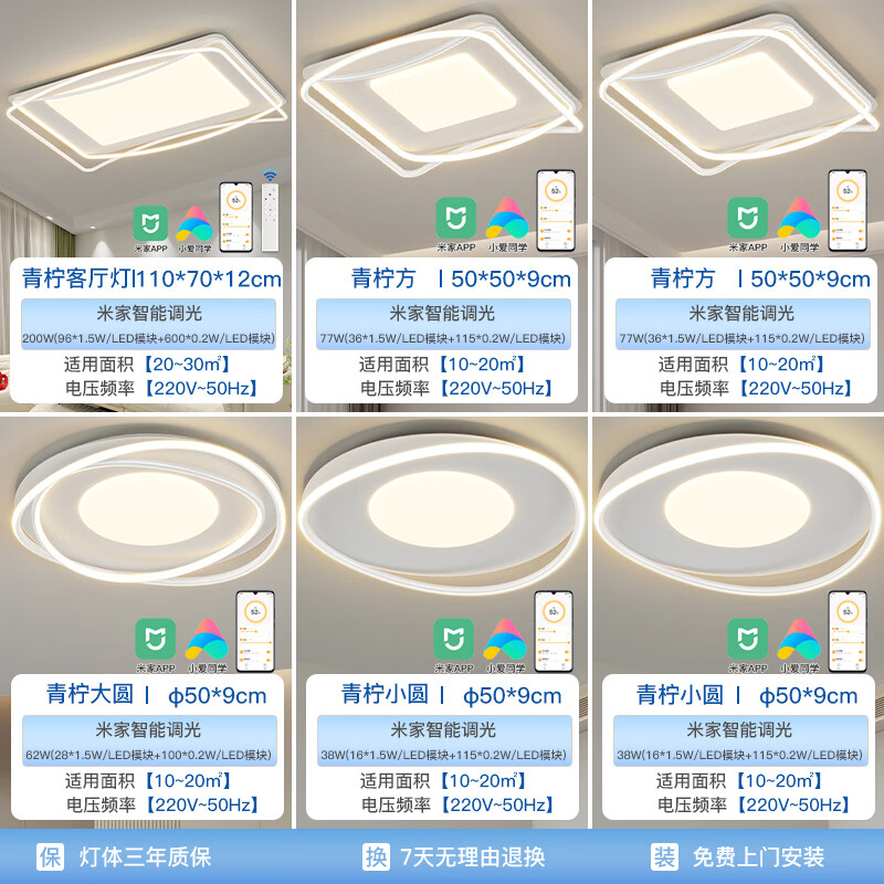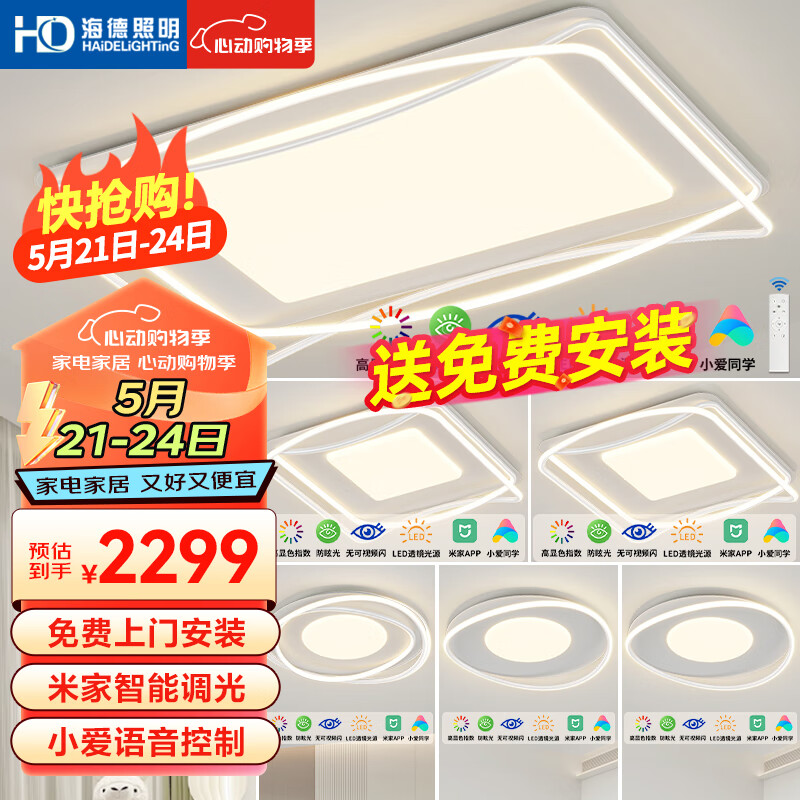 HD米家智能AI语音吸顶灯 led大客厅卧室全屋灯饰 包安装灯具套餐I价格:2799.00元!