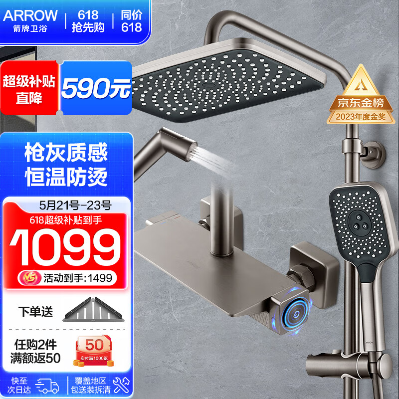箭牌(ARROW)恒温花洒套装冷热家用卫生间挂墙式淋浴增压喷头套装 【热款】枪灰恒温花洒34126HGG价格:1399.00元!