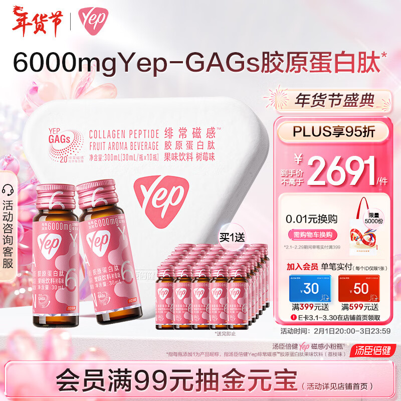 汤臣倍健Yep磁感小粉瓶 绯常磁感胶原蛋白肽果味饮料(树莓味)【到手共收120瓶】 添加Yep-GAGs胶原蛋白肽价格:4260.00元!