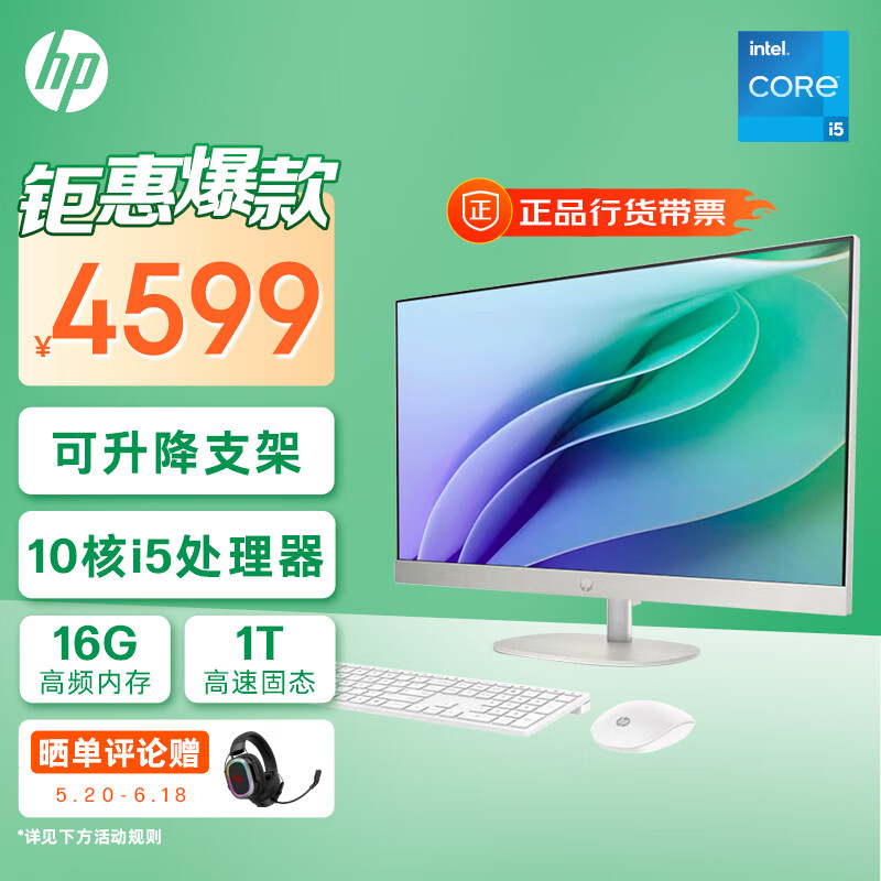 惠普HP 星One系列高清一体机电脑27英寸(13代酷睿i5-1335U 16G 1TB固态硬盘 注册升级三年上门)高色域价格:4569.00元!