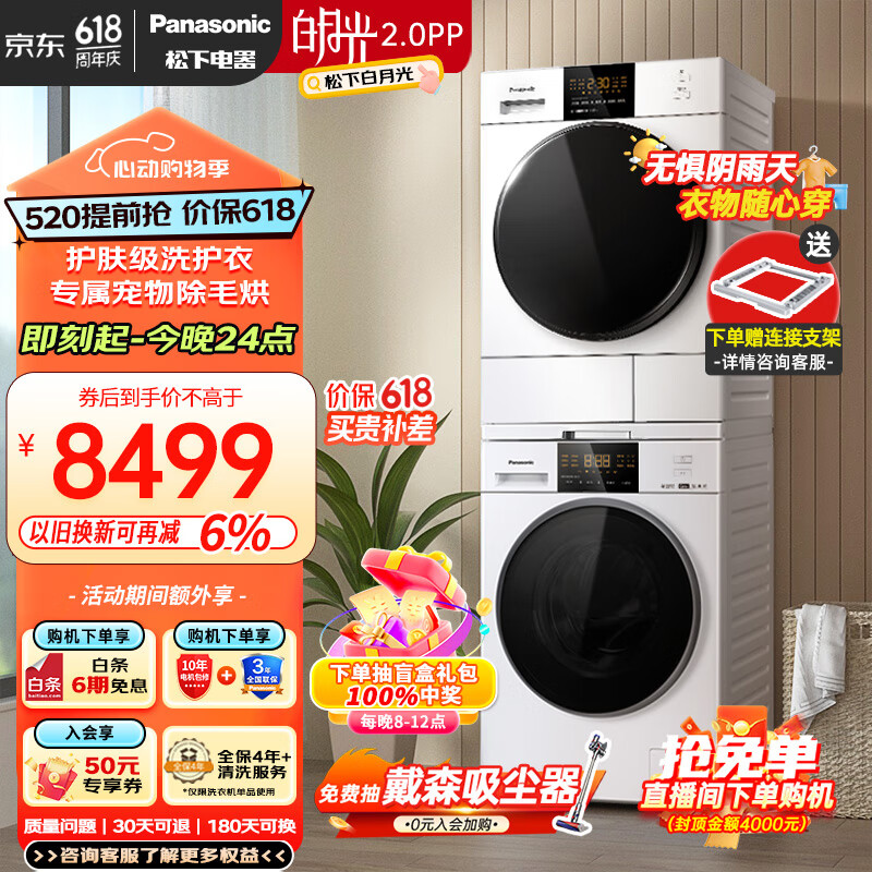 松下(Panasonic)白月光2.0PP 升级护理版 10+10洗烘套装 变频压缩机 光动银除菌 泡沫净 宠物除毛烘 3E1AK+82QR1价格:9899.00元!