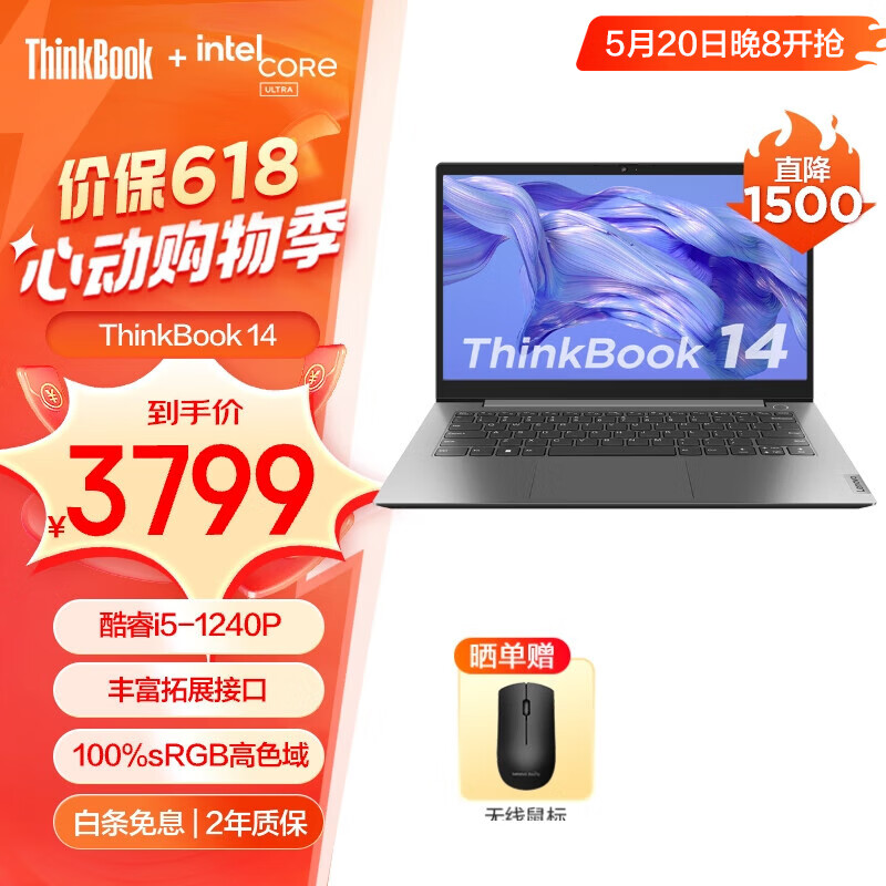 ThinkPad 联想ThinkBook14 12代英特尔酷睿 商务轻薄学生笔记本电脑 14英寸:i5-1240P 512G 9ACD 预装win11价格:3799.00元!