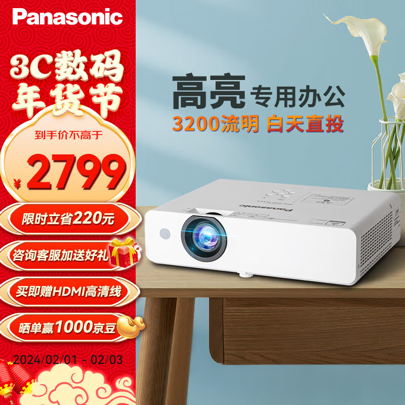 松下(Panasonic)PT-WX3201投影仪办公会议专用 投影机客厅家庭影院 白天商务培训教学 (3200流明 3LCD)价格:2899.00元!