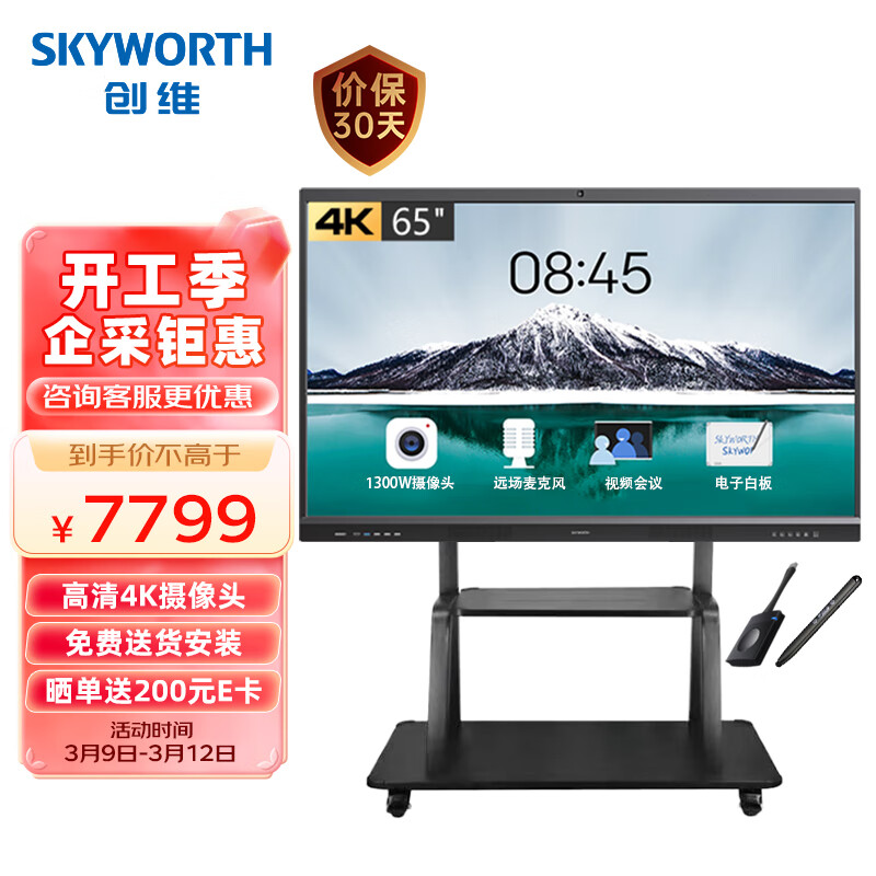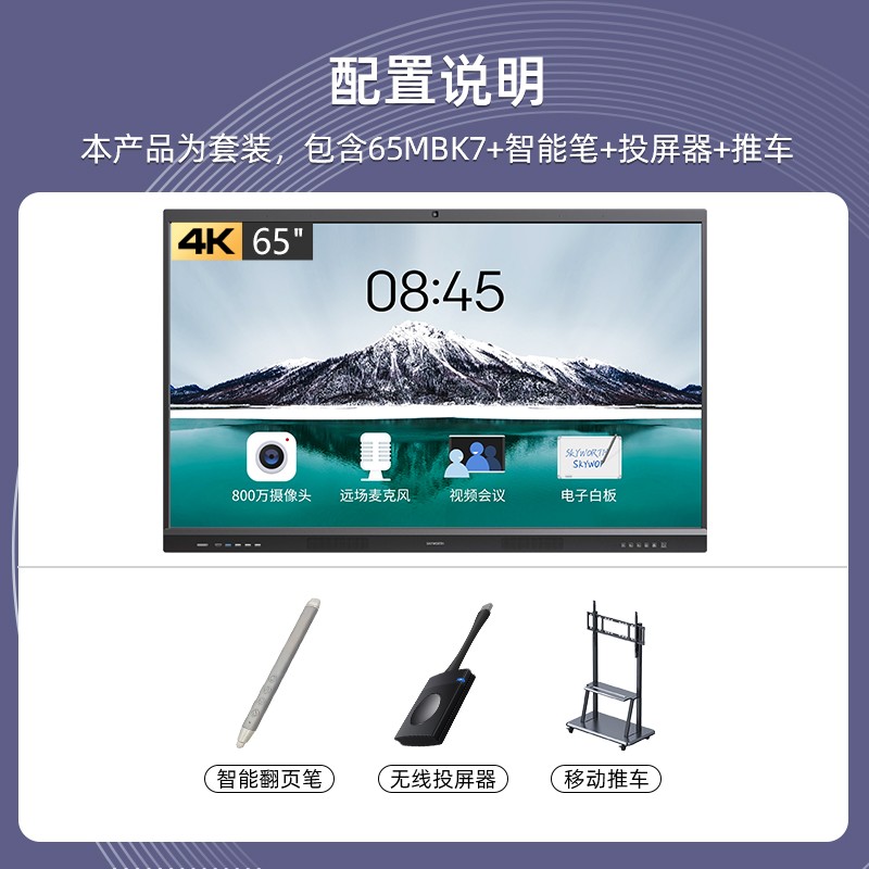 创维(Skyworth)会议平板65英寸智能触摸一体机 电子白板 无线传屏 视频会议电视65MBK7投屏移动推车【商用显示】价格:7799.00元!