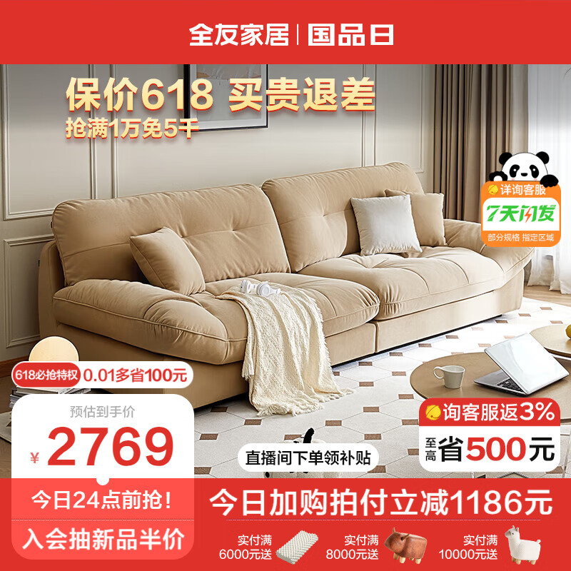 全友家居 布艺沙发小户型客厅猫抓布云朵四人位直排卧室沙发111039价格:3955.71元!