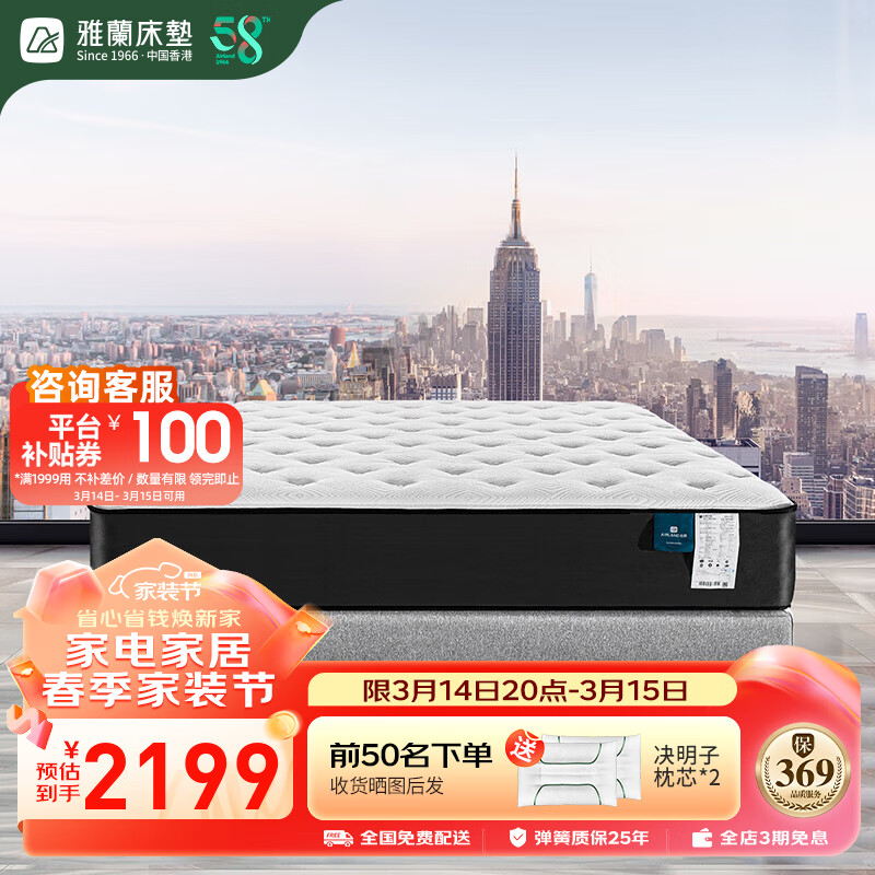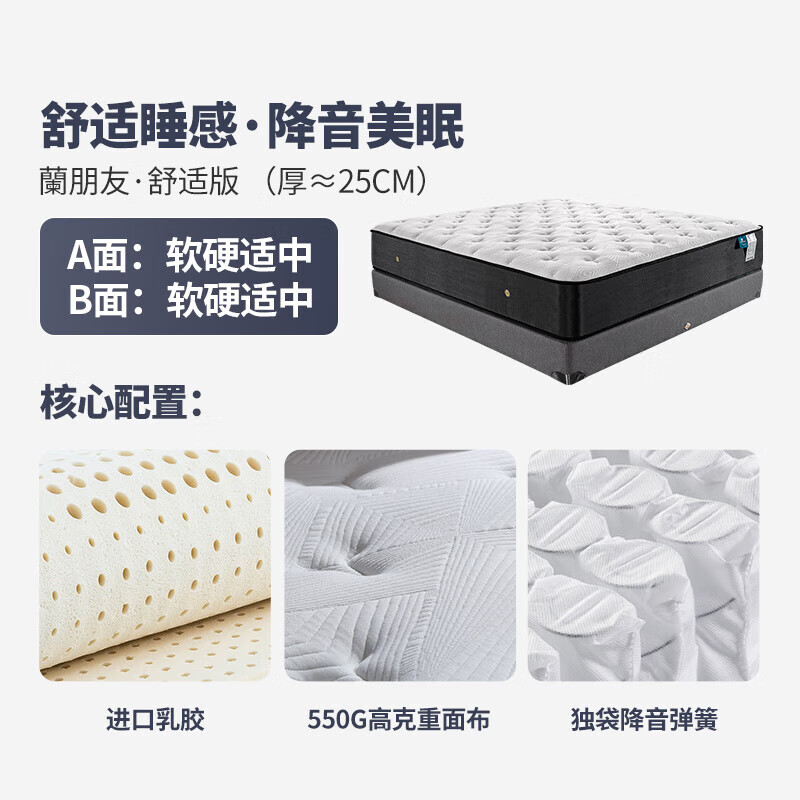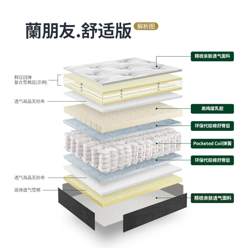 雅兰50周年纪念款 软硬适中独袋弹簧乳胶床垫 蘭朋友舒适版 1.5*2米价格:2699.00元!